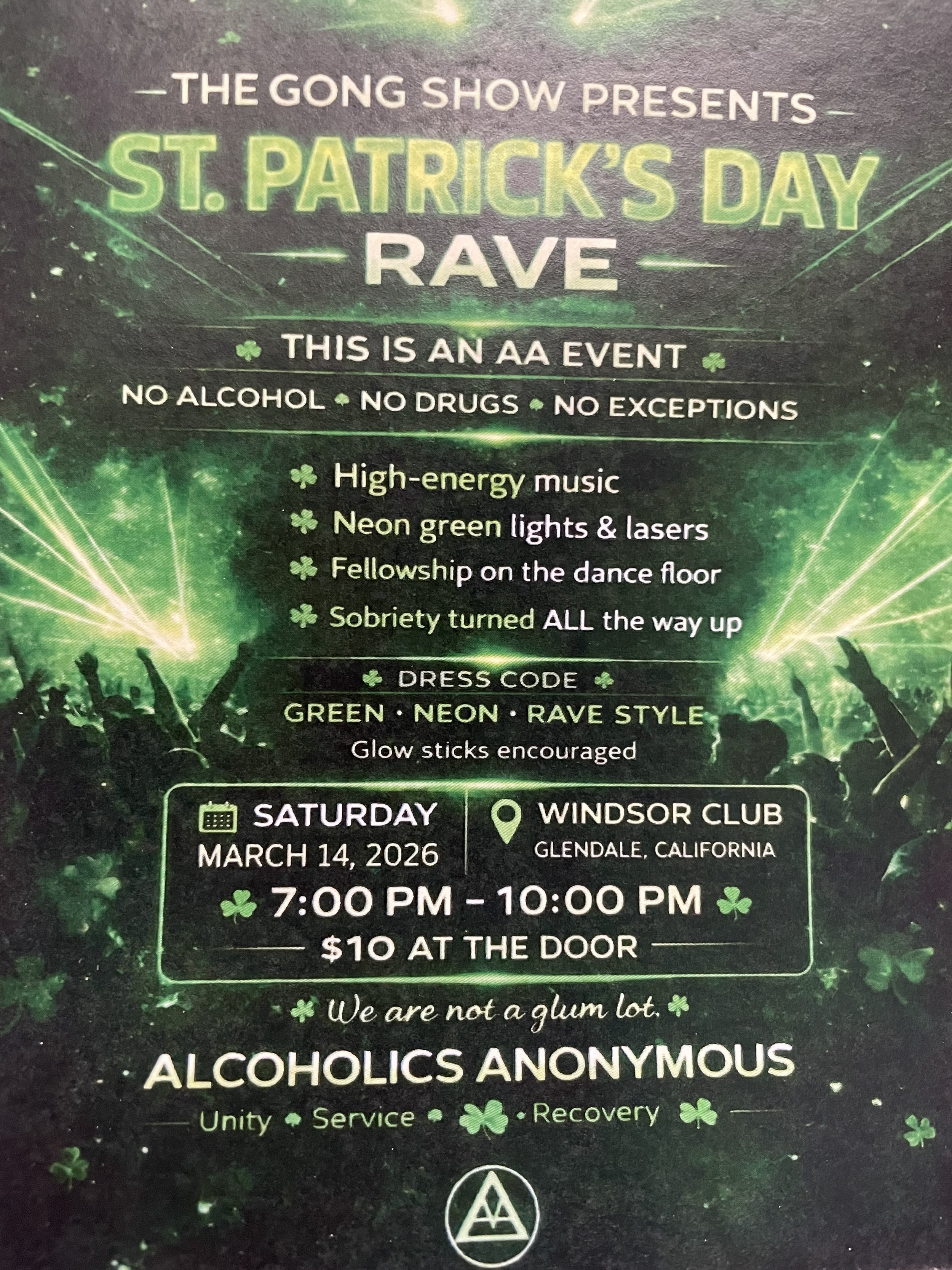 Come for the Rave and AA meeting!